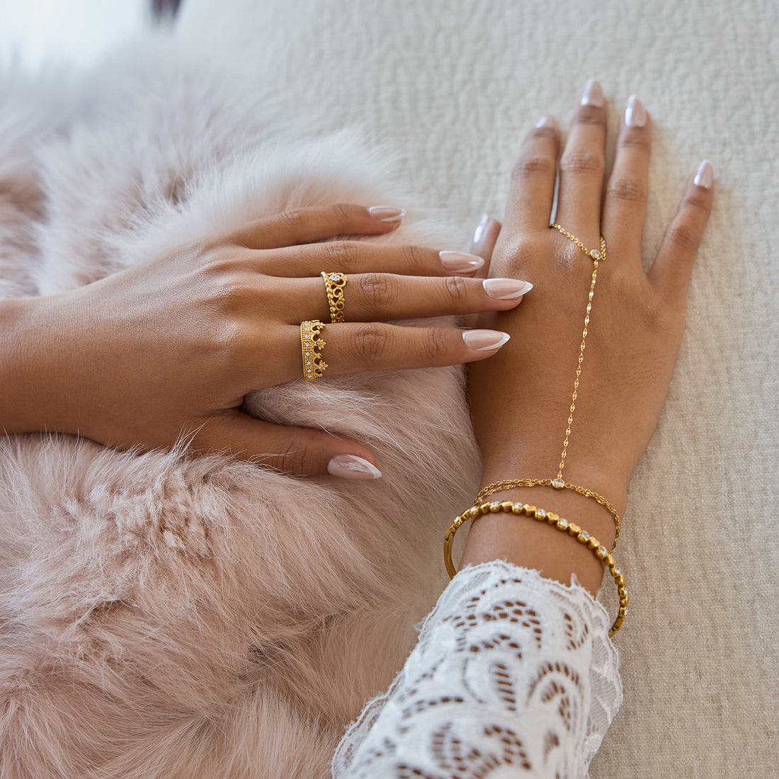 PVD-Plated Stainless Steel Small Gold Bead Gold Chain Stackable Bracelet