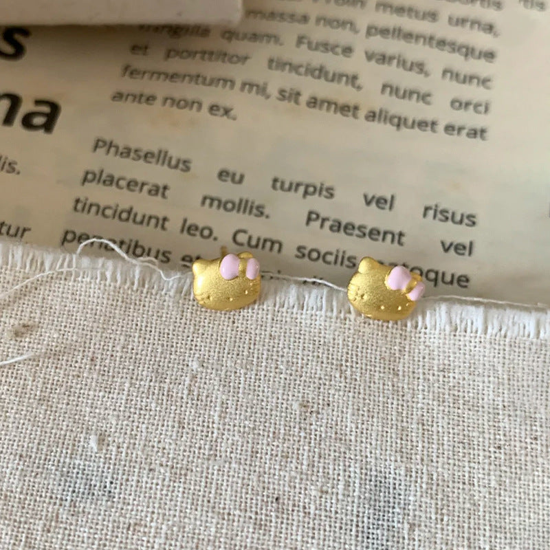 S925 Sterling Silver Bow Cat Stud Earrings